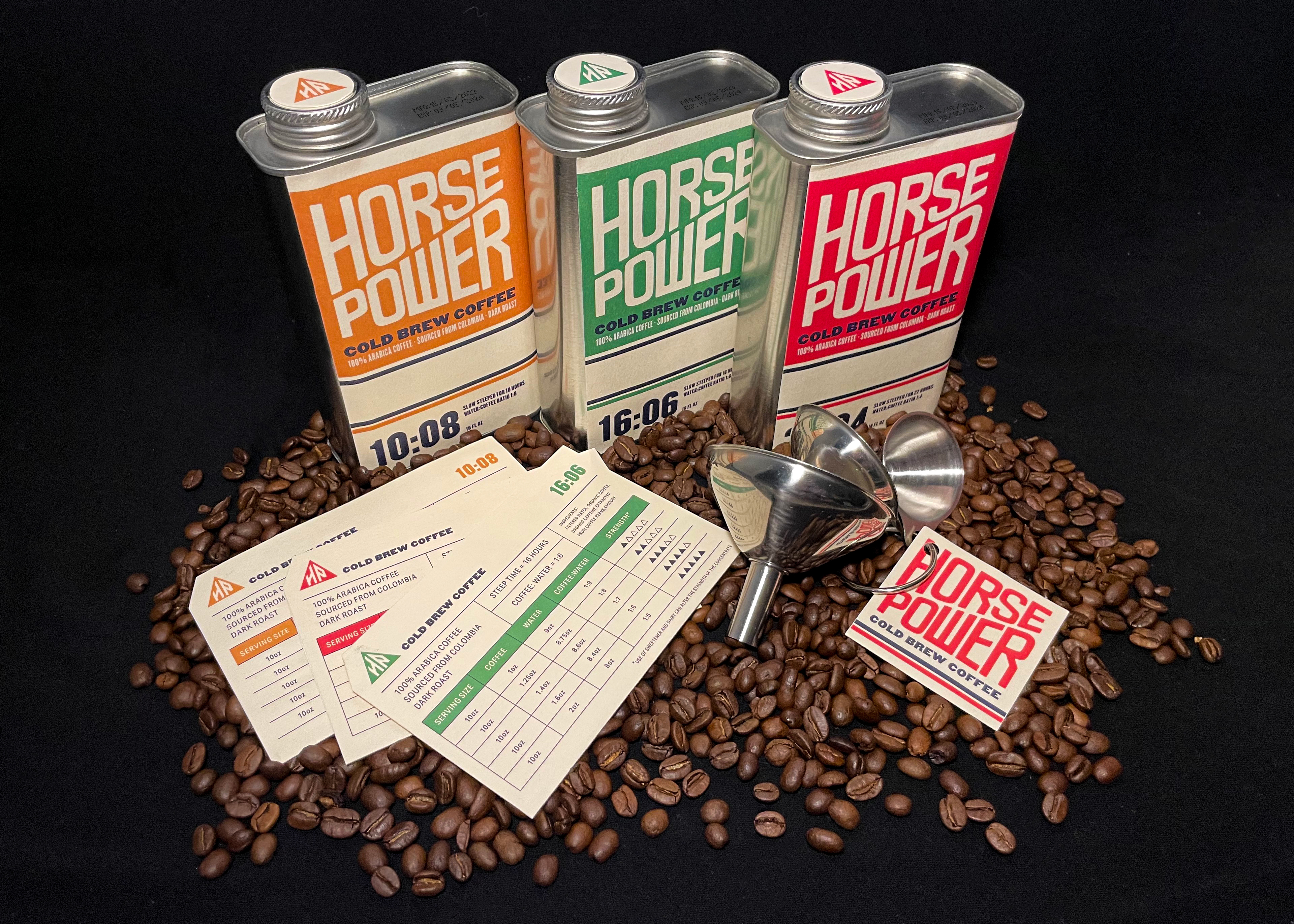 Just like a car’s engine would seize up without motor oil, many people cannot make it through the day without their caffeine fix. Inspired by vintage motor oil cans, Horsepower Cold Brew Coffee depicts coffee like a fuel for humans.