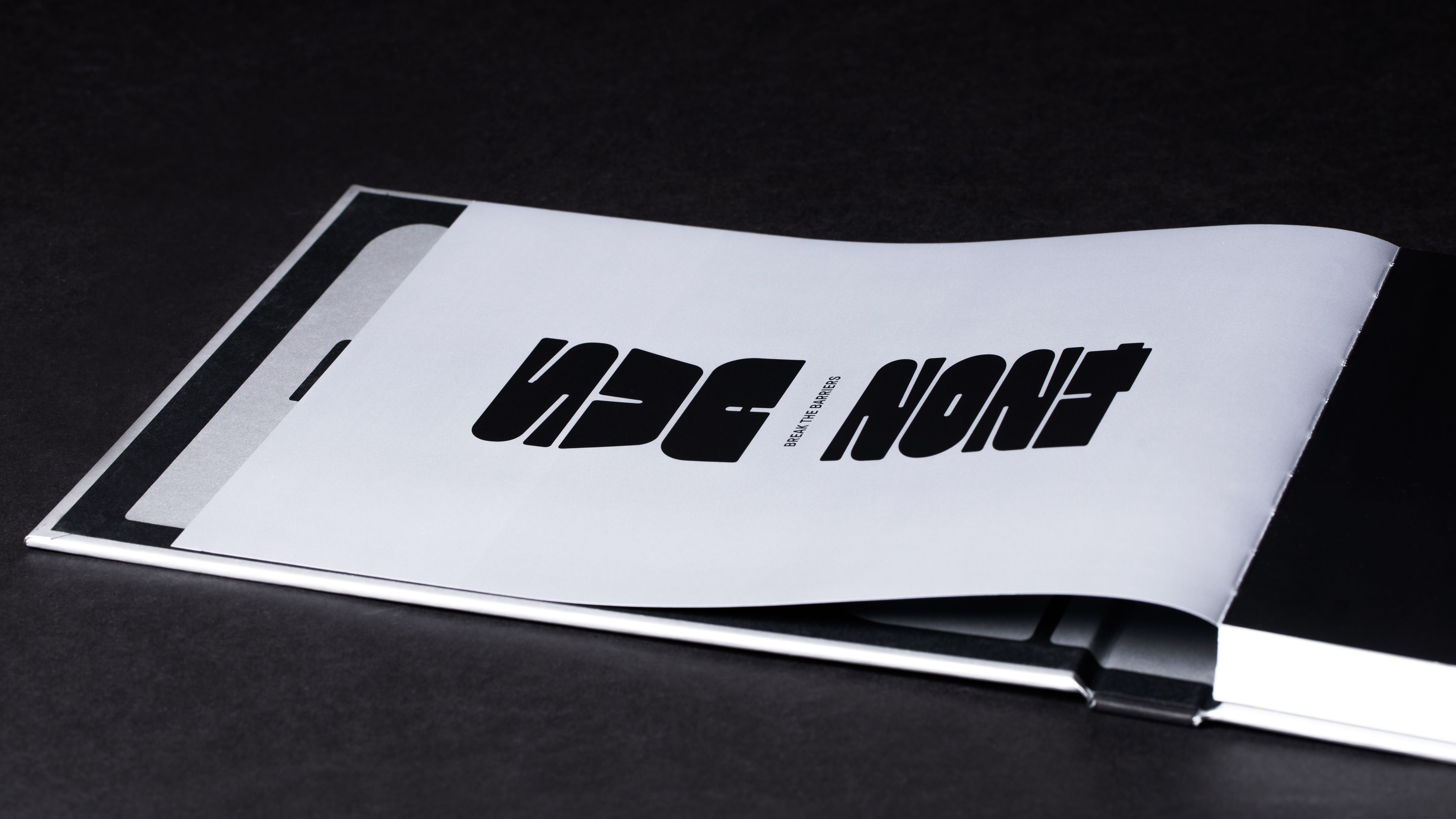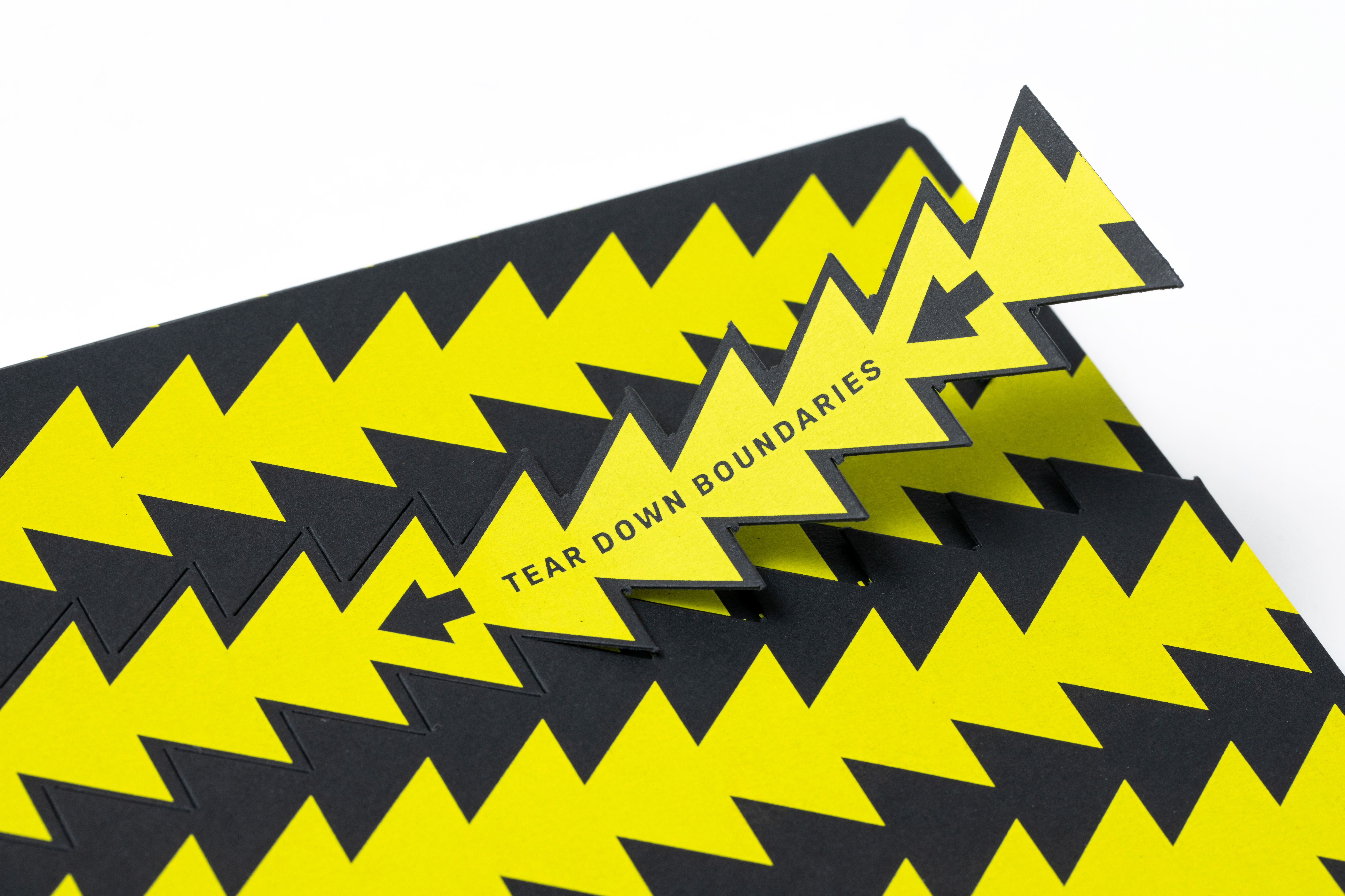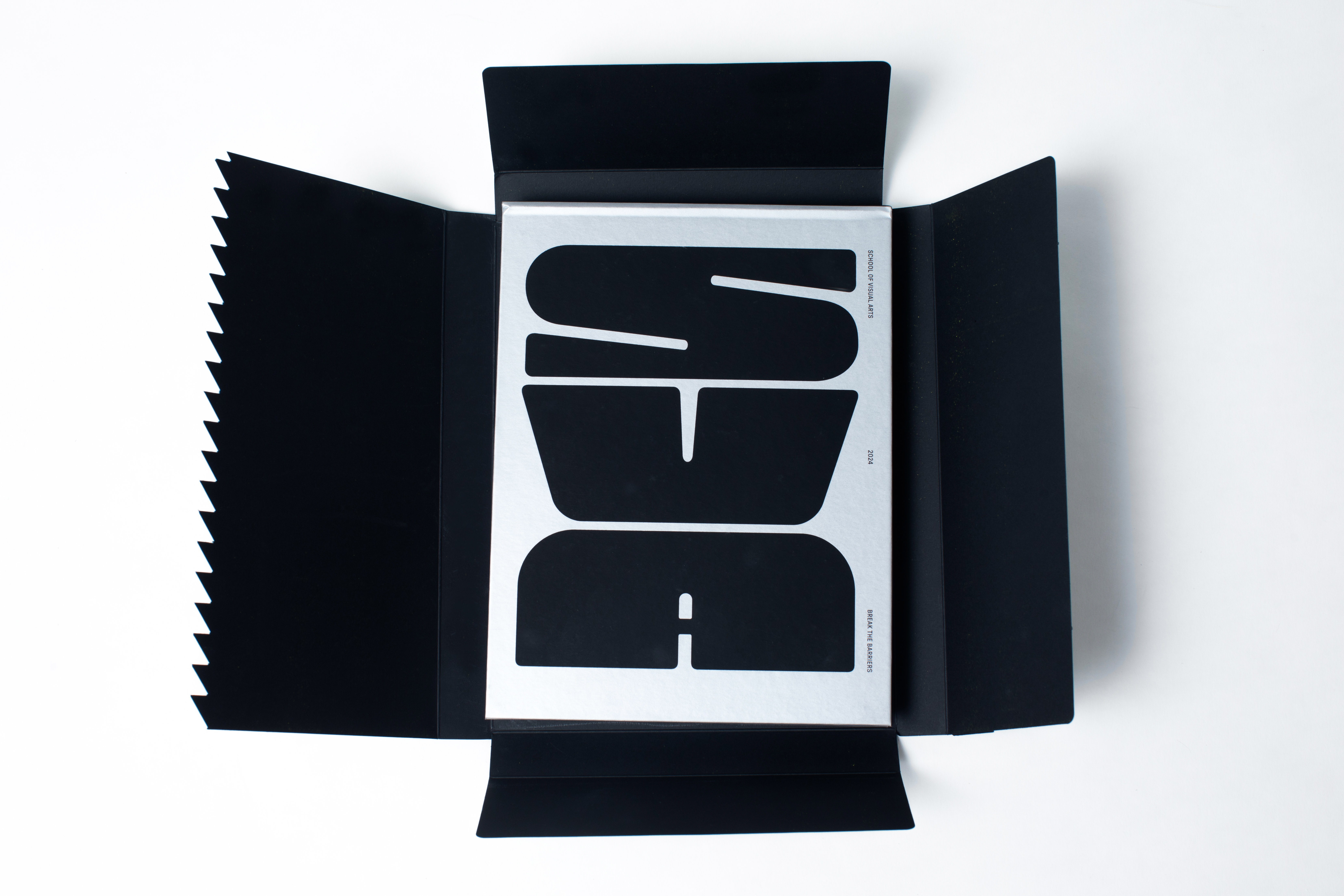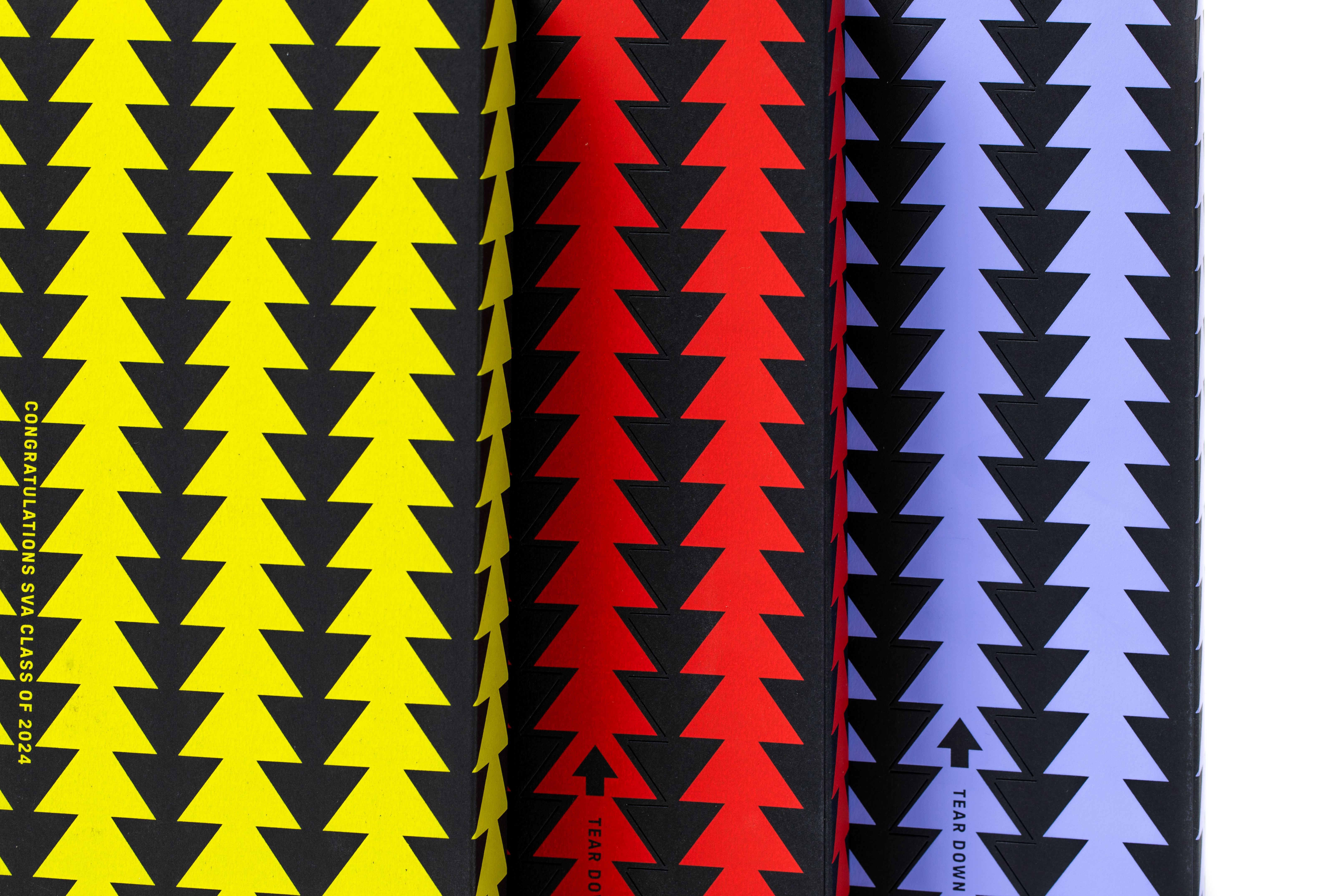 The 2024 School of Visual Arts yearbook theme is “Breaking Boundaries.” The book breaks convention by being in a vertical format and is delivered inside a tear-away cover where you literally have to break open the container via a pull-strip to reveal the actual book. The book also features a custom variable typeface, Panta Rhei (meaning always in flux) with dramatically extended proportions and very small counter spaces.